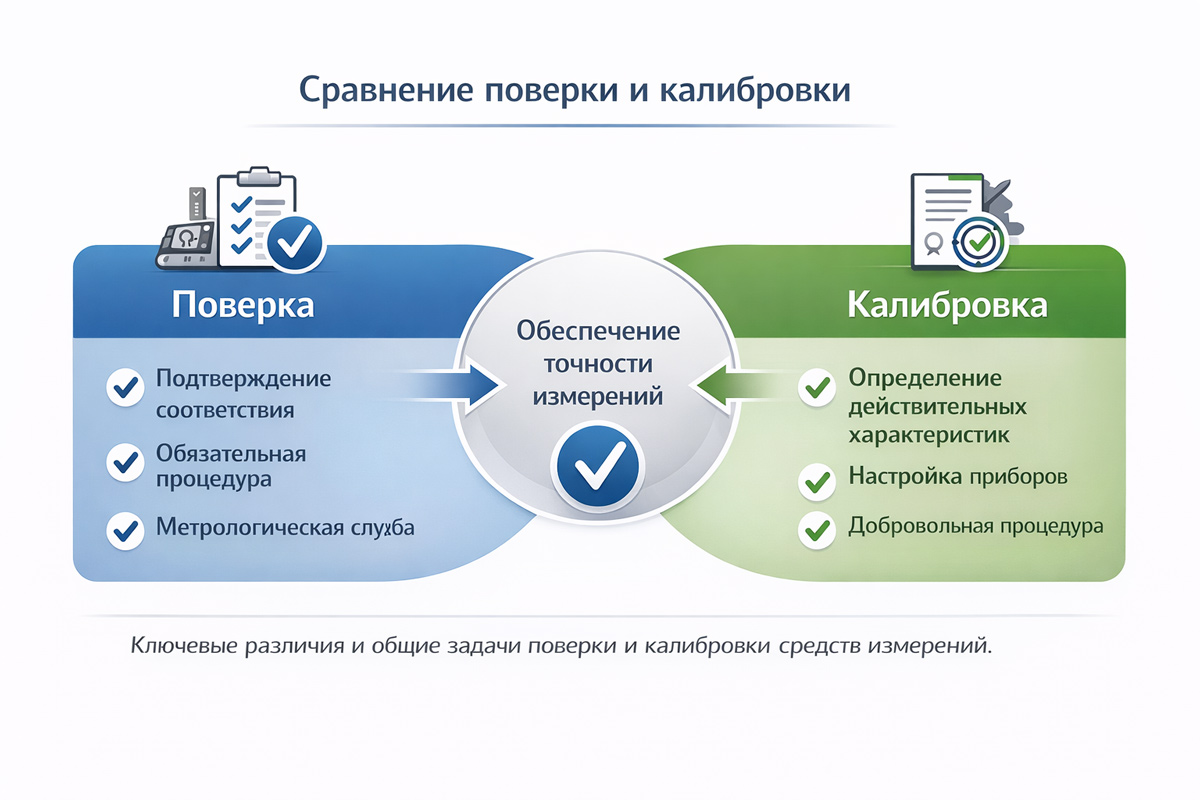 Хотя поверка и калибровка относятся к метрологическим процедурам, между ними существуют принципиальные различия.