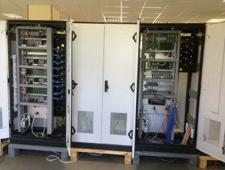 Блоки электрически и конструктивно объединены в законченную специфицированную единицу - шкаф УИ-174РХХ, в котором расположены до четырех каркасов, связанных друг с другом магистралью МПИ. Типовые исполнения шкафов отличаются по составу и количеству входящих в них блоков. Фото общего вида шкафов комплексов приведено на рисунке 2.