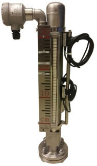 - стеклянного индикатора с магнитными «флажкам» и измерительной шкалой для визуального измерения уровня;