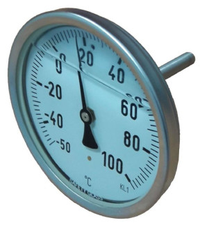Принцип действия термометров основан на упругой деформации, возникающей под воздействием температуры двух прочно соединенных металлических пластин, имеющих различные температурные коэффициенты линейного расширения. При изменении температуры биметалл изгибается в сторону материала с меньшим коэффициентом линейного расширения, изгиб с помощью кинематического узла преобразуется во вращательное движение стрелки, показывающее измеряемое значение температуры по шкале термометра.