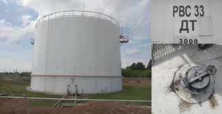 Резервуар стальной вертикальный цилиндрический РВС-3000 с заводским номером 33 расположен на территории АО "ННК-Амурнефтепродукт", резервуарный парк, Белогорская нефтебаза, 676500, г. Белогорск, ул. Матросская, 62.