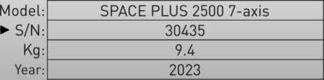 | SPACE PLUS 2500 7-axis | 625 | 635 | 200 | 9,4 |