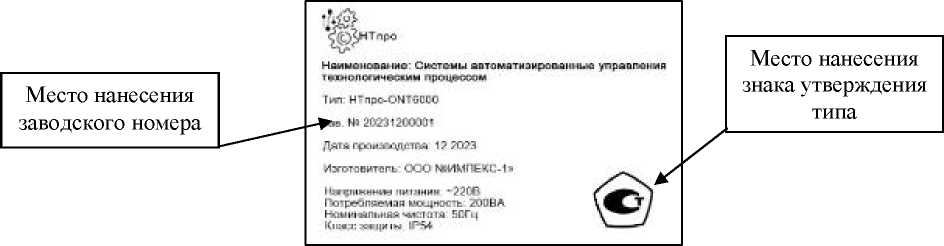 Идентификационная табличка с указанием мест нанесения знака утверждения типа и заводского номера представлена на рисунке 2.