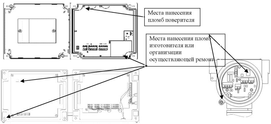 Места нанесения пломб изготовителя или организации осуществляющей ремонт