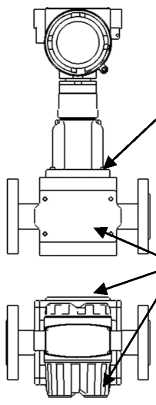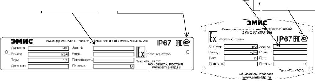 Знак утверждения типа и заводской номер расходомера наносятся на маркировочную табличку, которая расположена сверху на корпусе электронного блока, методом фотолитографии, полиграфическим способом или методом лазерной маркировки в цифровом коде, места расположения показаны на рисунке 2.