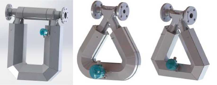 Первичный преобразователь расхода представляет собой корпус, во внутренней части которого расположены две изогнутые измерительные трубки, задающая катушка и детекторы, представляющие собой сборку из катушки индуктивности и постоянного магнита.