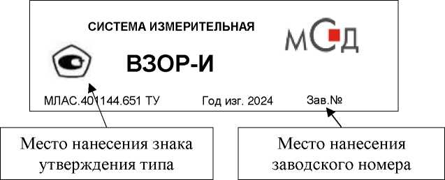 наносится в формуляр и на титульный лист руководства по эксплуатации типографским способом, на маркировочную этикетку, расположенную на средней камере подсистемы видеоизмерительной, методами шелкографии, травления или гравировки.