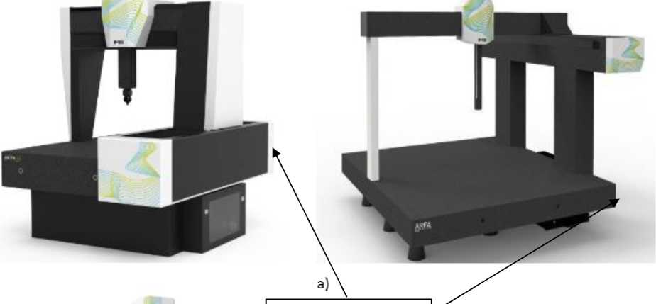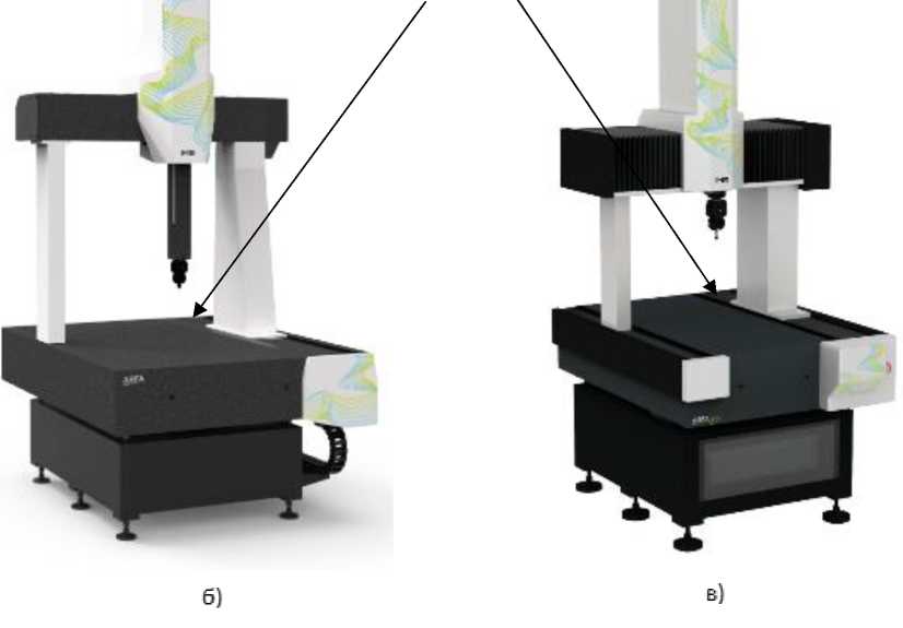 Конструкция машин портальная, с неподвижным гранитным измерительным столом и боковым приводом портала, перемещающимся на воздушных подшипниках. Три направляющие КИМ образуют декартову базовую систему координат X, Y, Z, в которой расположена трехмерная измерительная головка со сменными контактными датчиками или измерительная головка с несменными датчиками.