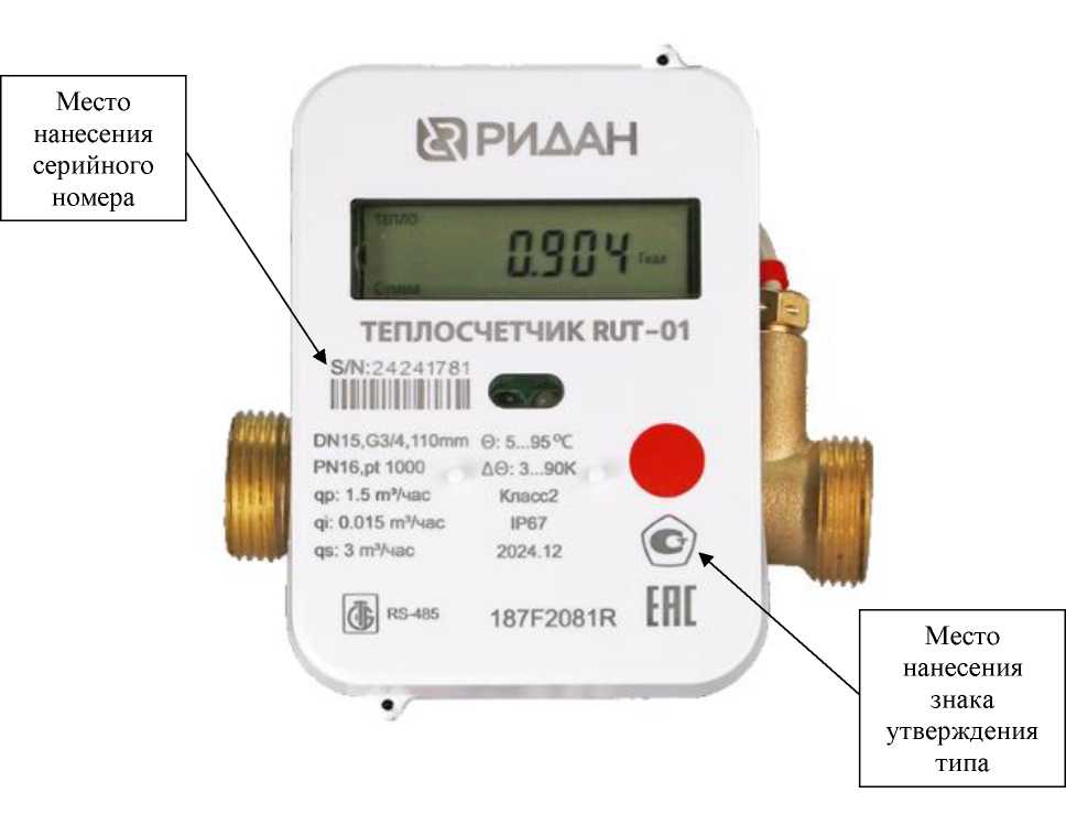 Серийный номер представляет набор из арабских цифр, наносится на корпус вычислителя теплосчетчика методом струйной печати или лазерной гравировки в соответствии с рисунком 3.