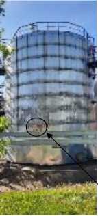 Рисунок 1 - Общий вид резервуара стального вертикального цилиндрического РВС-1000 и места нанесения заводского номера