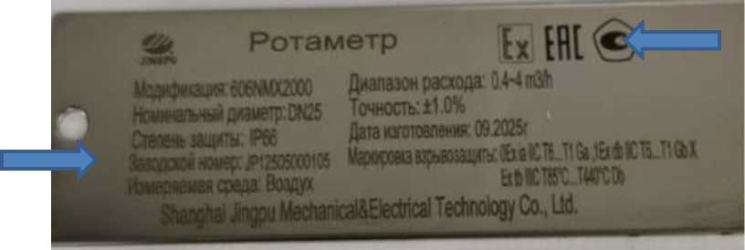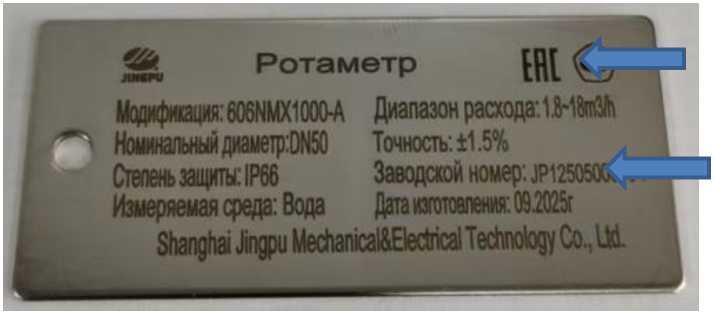 Общий вид ротаметров представлен на рисунке 1. Заводской номер ротаметров наносится в буквенно-цифровом формате на металлическую пластину (шильдик) методом лазерной гравировки, которая крепится на корпусе ротаметра. Внешний вид пластины (шильдика) показан на рисунке 2. Нанесение знака поверки на средство измерений не предусмотрено.