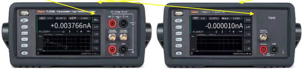 На передней панели измерителей находится высококонтрастный сенсорный ЖК-дисплей с графическим пользовательским интерфейсом, который предоставляет несколько вариантов просмотра данных. В дополнение к числовому формату данные также можно просматривать в виде графика, гистограмм и тренда. В правой части панели расположены выходные/входные разъемы. Для подключения флэш-диска представлен разъем USB.