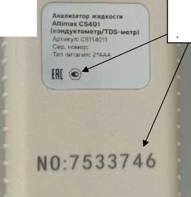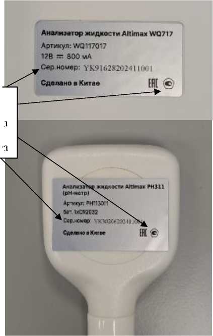 Серийные номера микропроцессорного блока и датчиков (электродов) к нему указываются в паспорте СИ. Серийным номером, однозначно идентифицирующим анализатор, является серийный номер микропроцессорного блока. Для карманных исполнений не предусмотрена маркировка датчиков, так как они выполнены в едином корпусе с микропроцессорным блоком.