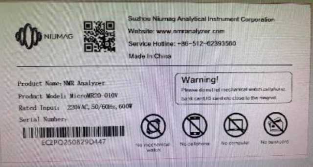 | Изготовитель | "Suzhou Niumag Analytical Instrument Corporation" |