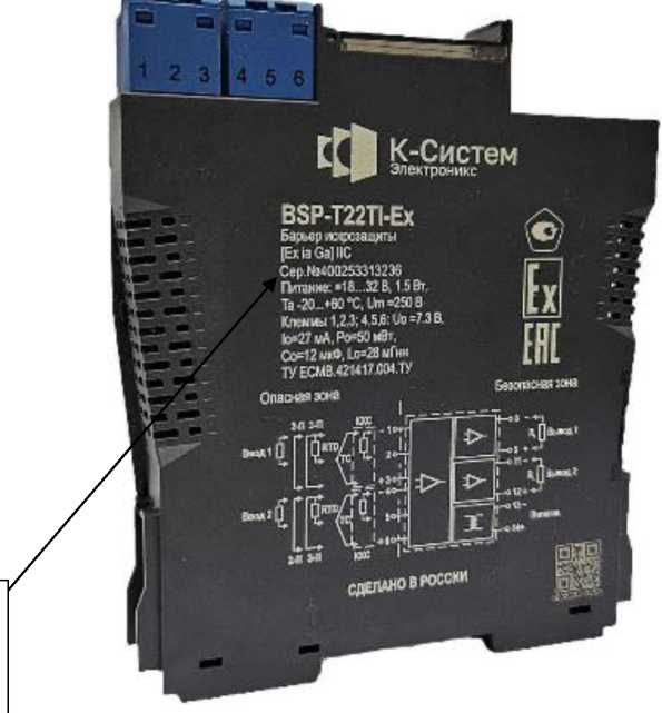 2 - обозначение (T) серии барьеров на терминальной плате;