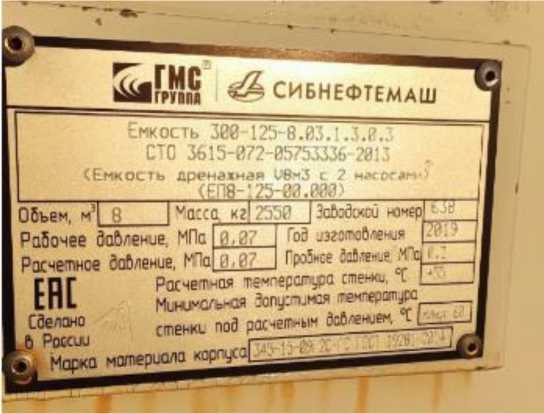 | Наименование СИ | Резервуар стальной горизонтальный цилиндрический |