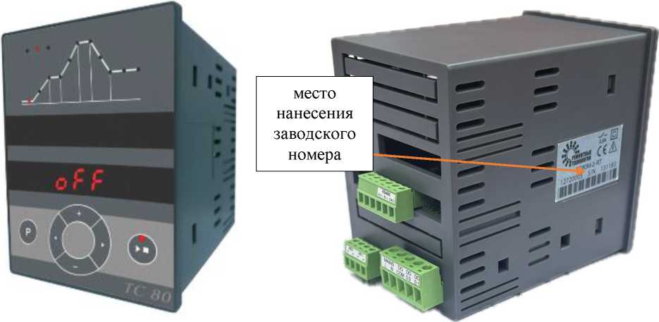 Заводской номер контроллеров в виде цифрового обозначения, состоящего из арабских цифр, наносится на боковую сторону корпуса при помощи наклейки.