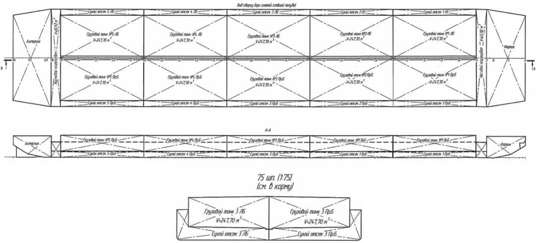 Танки отделены от наружной обшивки наливного судна. Погрузка и выгрузка нефтепродуктов производится закрытым способом. Трубы для подвода и отвода нефтепродуктов изготовлены таким образом, что при измерениях уровня жидкости исключена возможность притока или вывода жидкости произвольным образом.